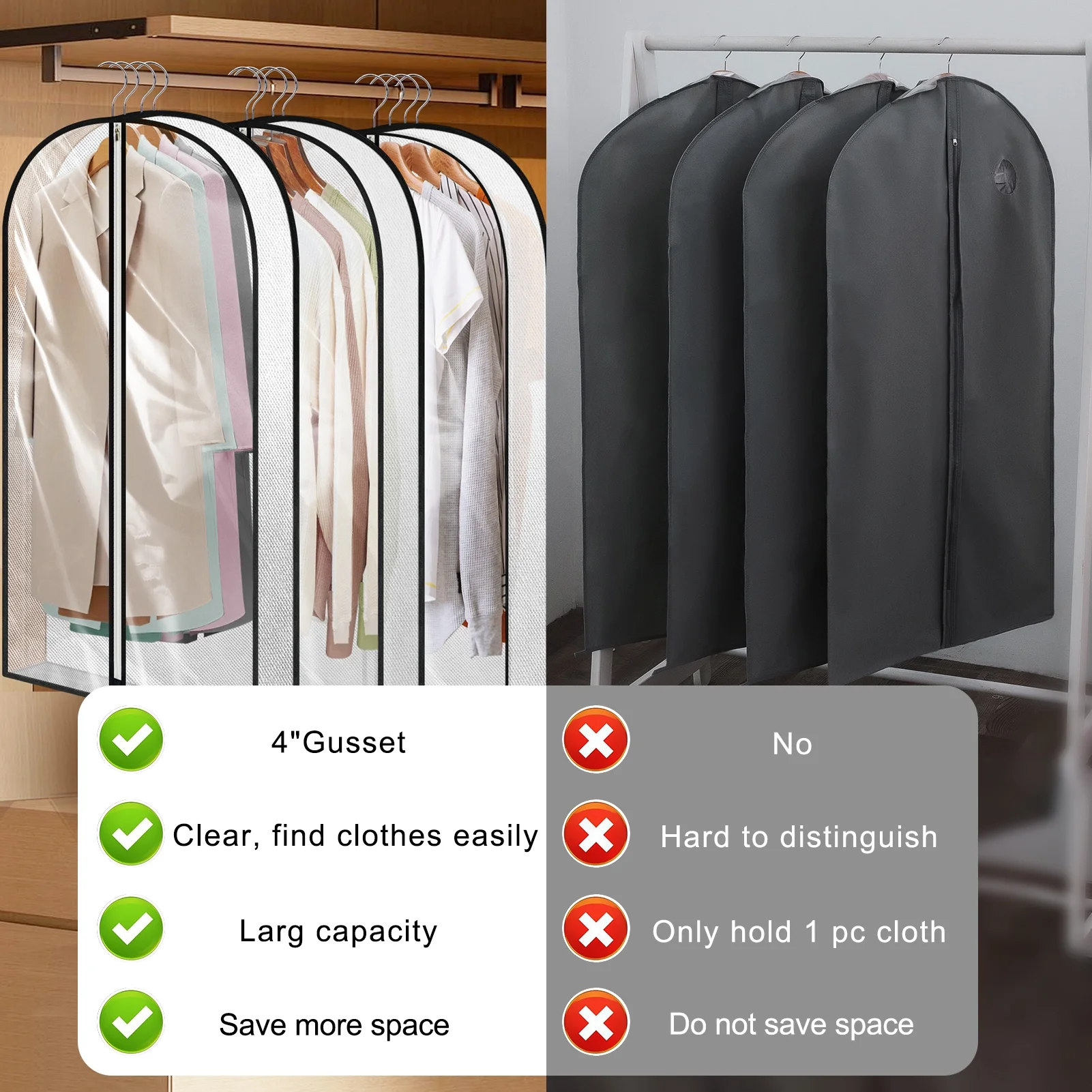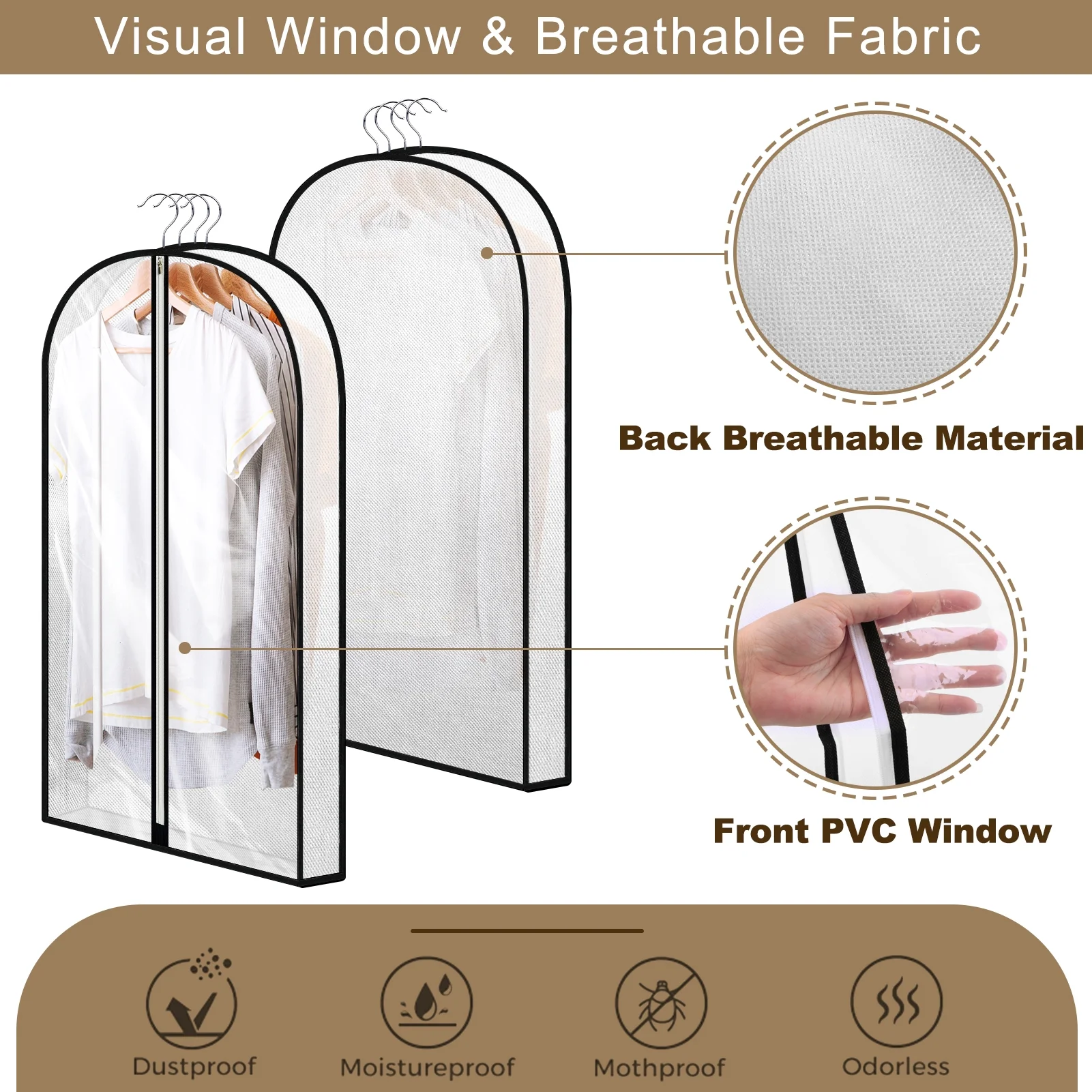 - Clear Visibility: Transparent PVC front allows easy viewing of contents without opening the bag, while the breathable non-woven fabric protects clothes from dust and odors.
